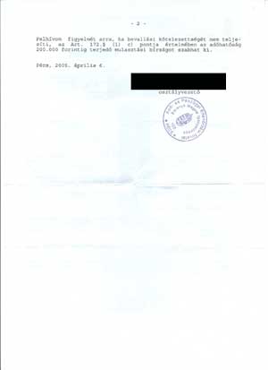Fogtam a végzést és bejelentettem az APEH-nek, hogy nincs egyesület, töröljék az adószámot. Mindez még 2001-ben történt. A fenti levélből látszik, hogy még 2005-re sem sikerült nekik tudomásul venni, hogy gyakorlatilag az egyesület, mint jogi személy sosem létezett. Azért fenyegetni még mindig fenyegetnek 200.000 Ft-ig terjedő büntetéssel...